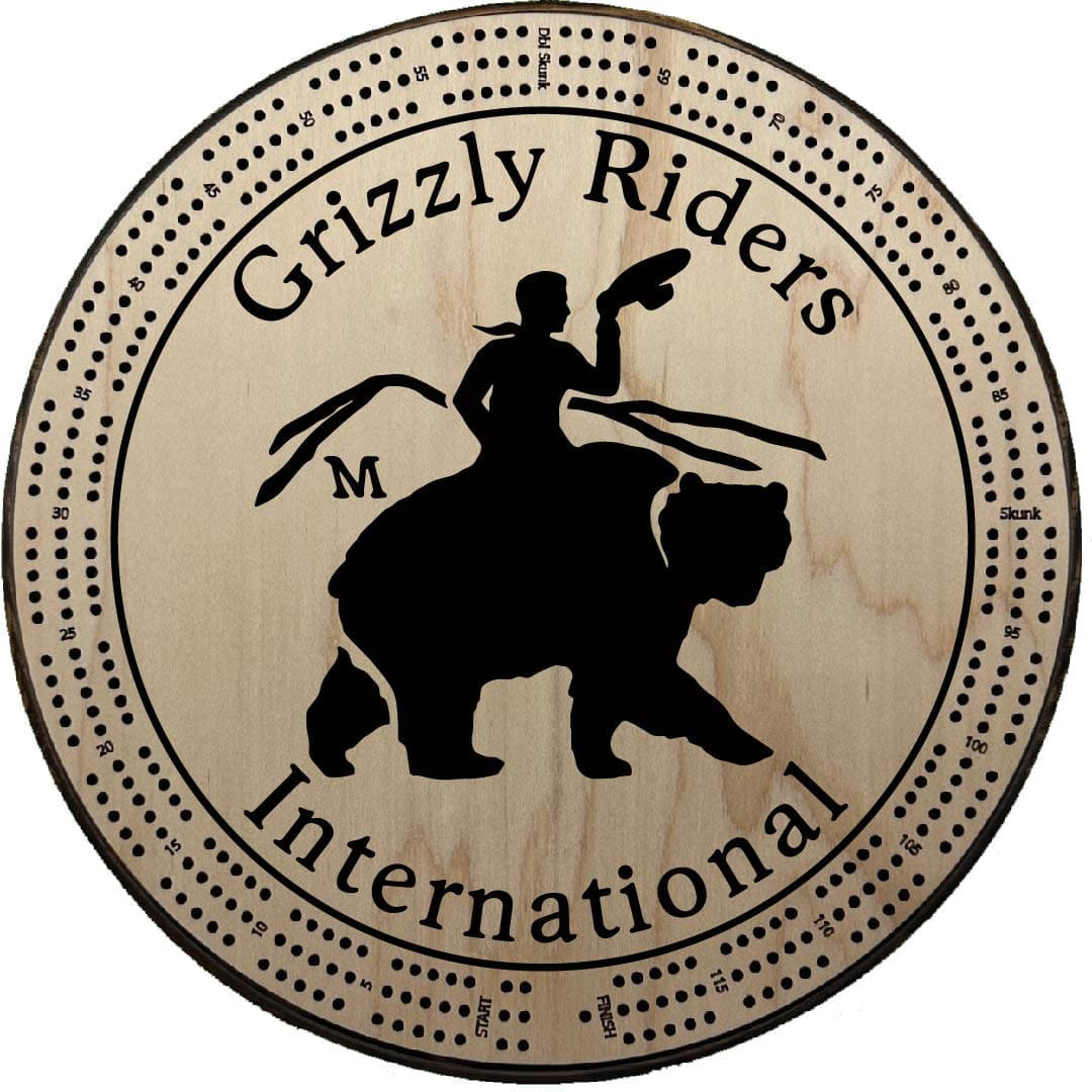 15in Custom Grizzly Riders Intl Logo 3 Track Cribbage Board.