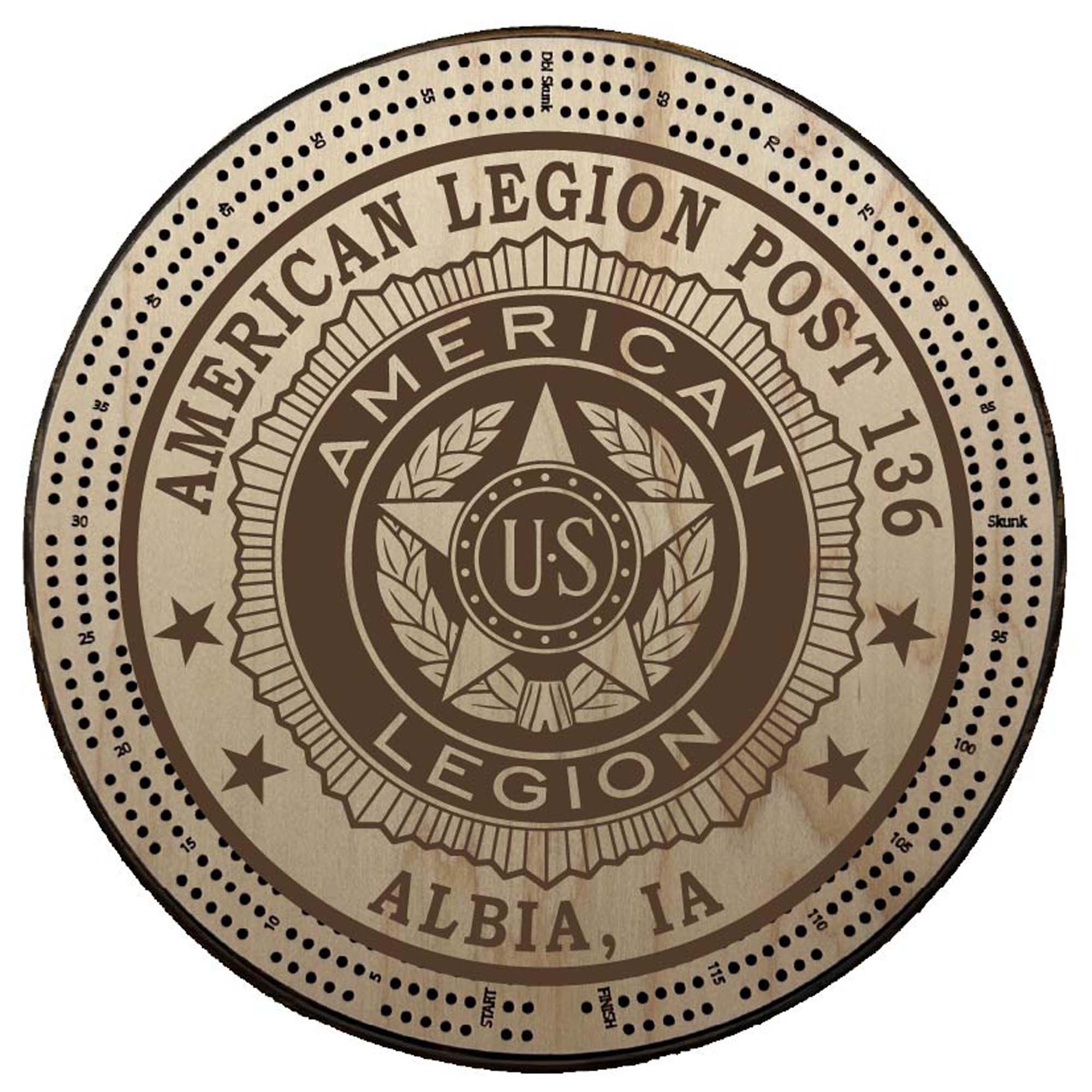 American Legion | Engraved | C1: Post #, Post City, State | Cribbage Board
