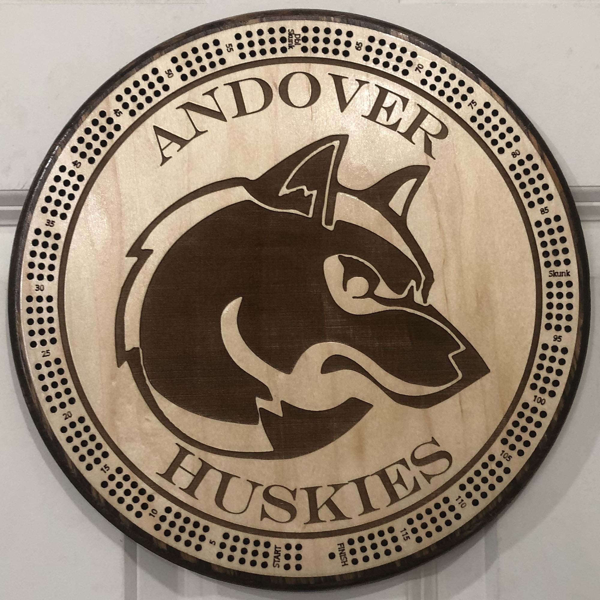 This custom cribbage board proudly displays the Andover Huskies logo, capturing the fierce and loyal spirit of Andover High School (Minnesota). Huskies fans and alumni will recognize the distinct mascot, a symbol of resilience and determination. Whether you’re a recent grad or a long-time supporter, this cribbage board evokes fond memories of those competitive school rivalries and the “Husky Pride” that runs deep.