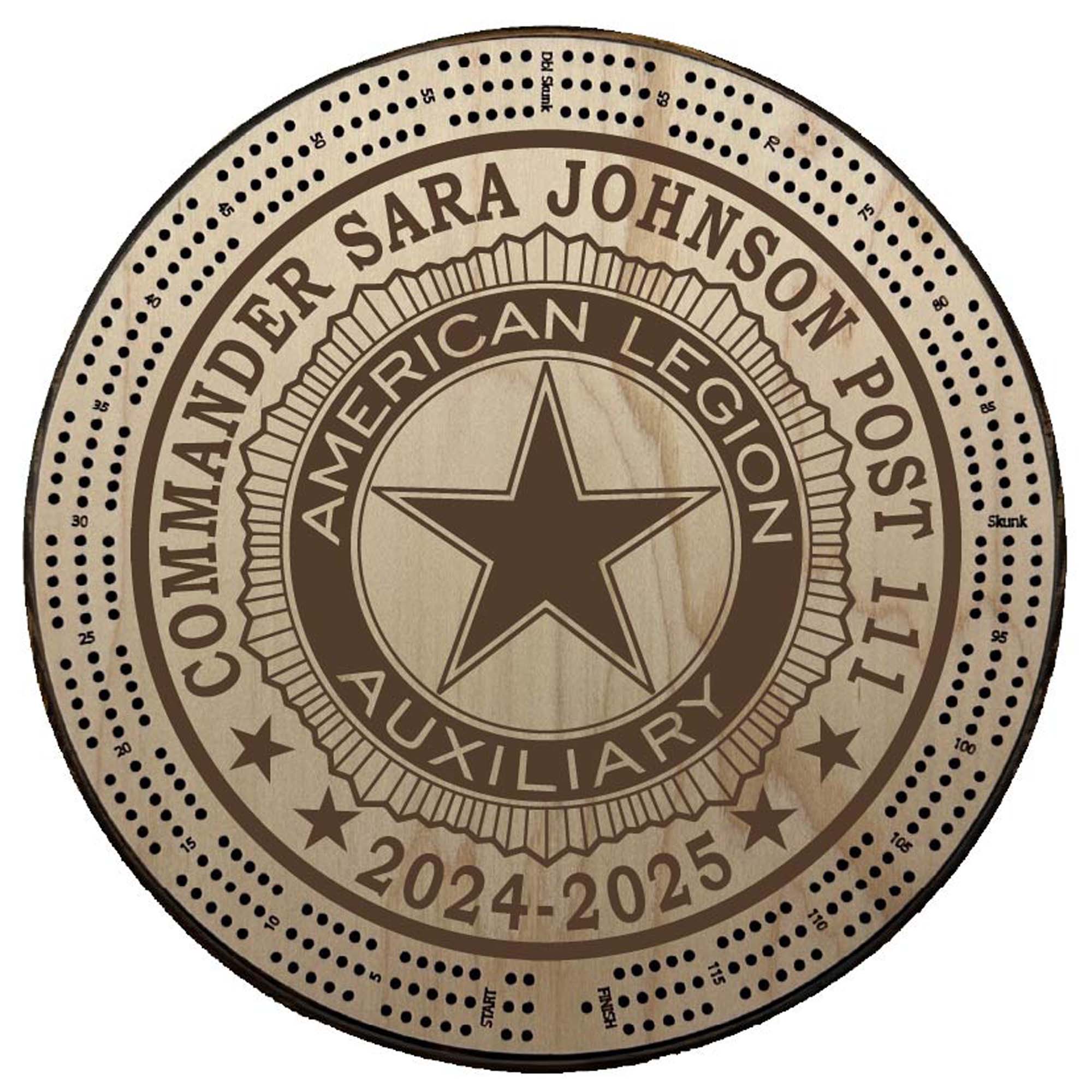 Auxiliary (ALA) | Engraved | C3: Commander Name, Post #, Dates Of Service | Cribbage Board
