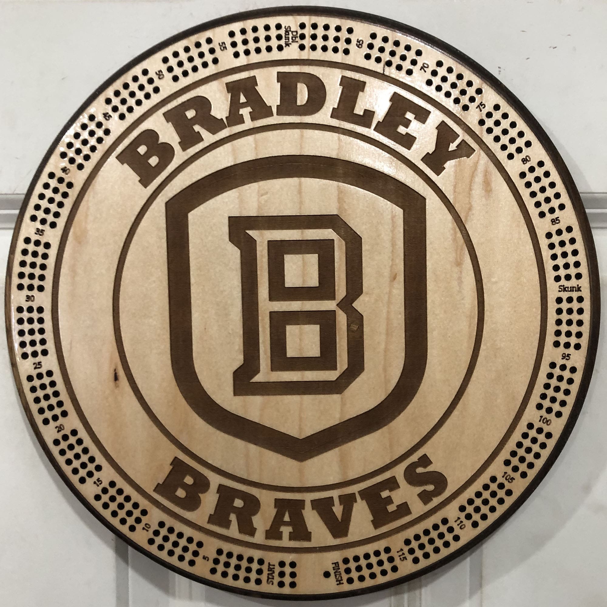 Bradley Braves Cribbage Board | 3-Track, 120-Point Round Game with Pegs & Cards