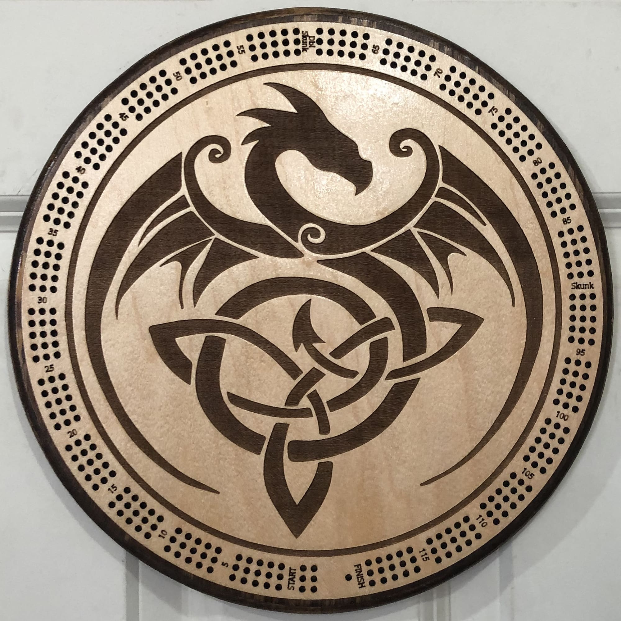 Celtic Dragon Cribbage Board | 3-Track, 120-Point Round Game with Pegs & Cards