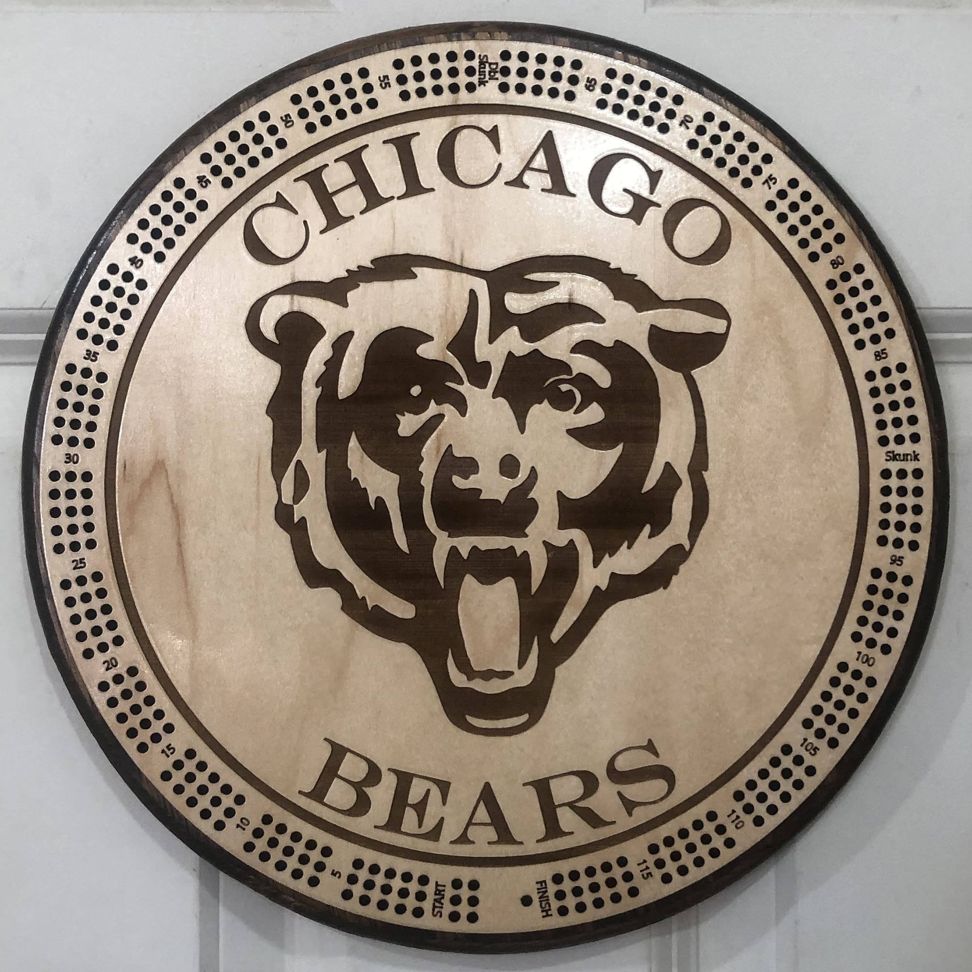 This wall-mountable cribbage board features: