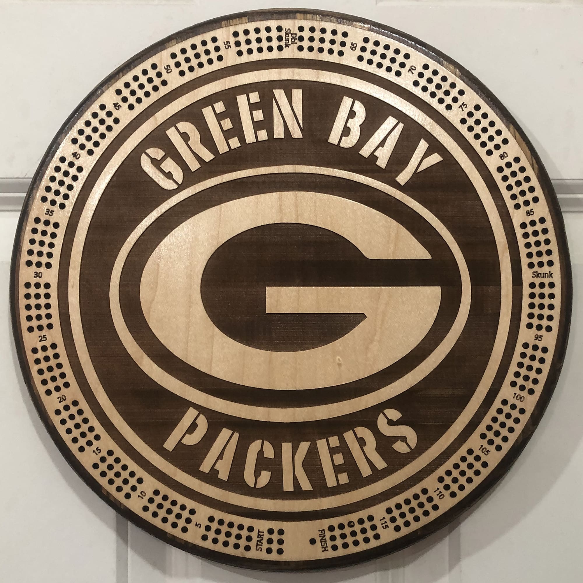 Green Bay Packers Cribbage Board | 3-Track, 120-Point Round Game with Pegs & Cards