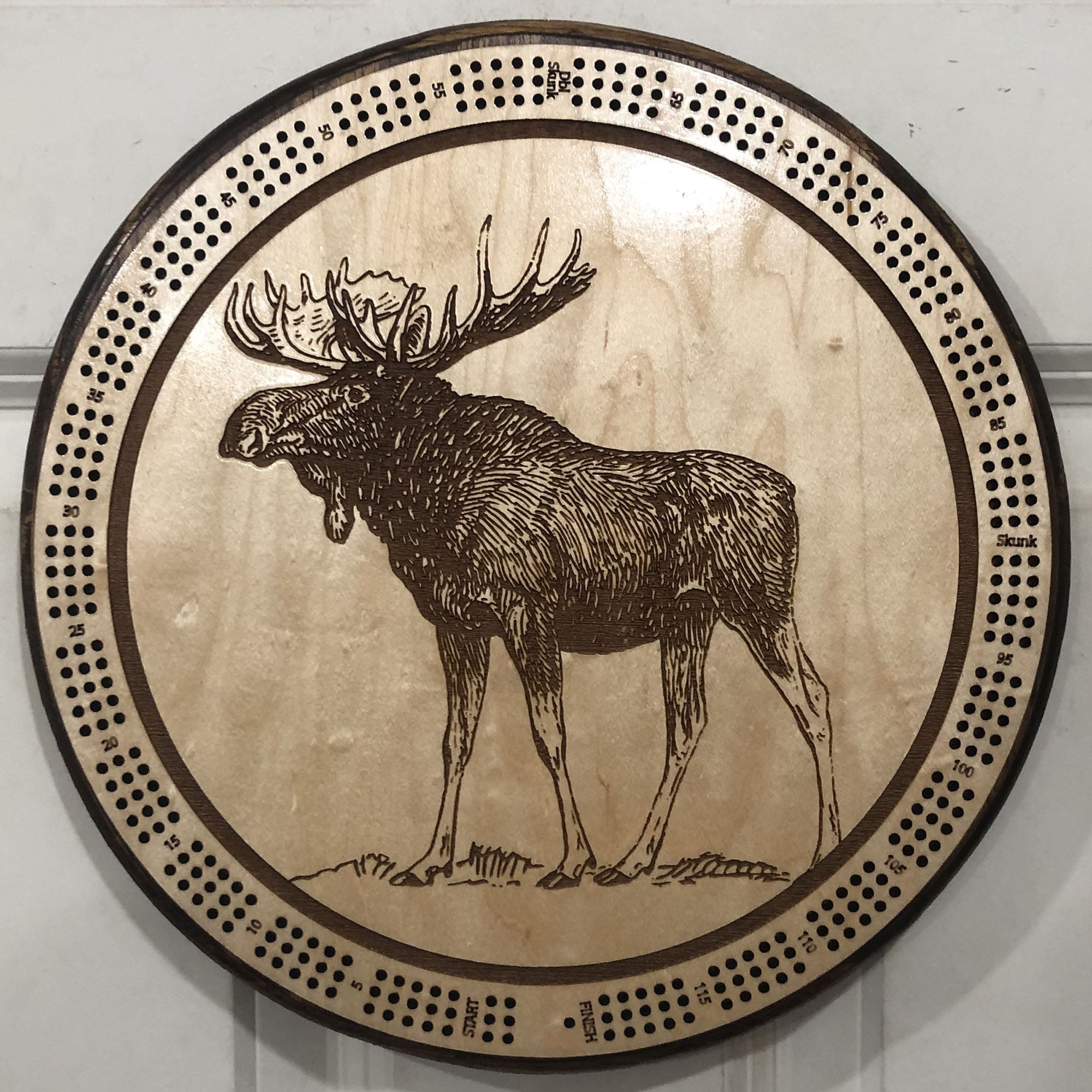 This cribbage board features a stunning etching of a majestic moose, beautifully detailed to capture the strength and grandeur of this iconic animal. Perfect for nature enthusiasts and those who admire the great outdoors.