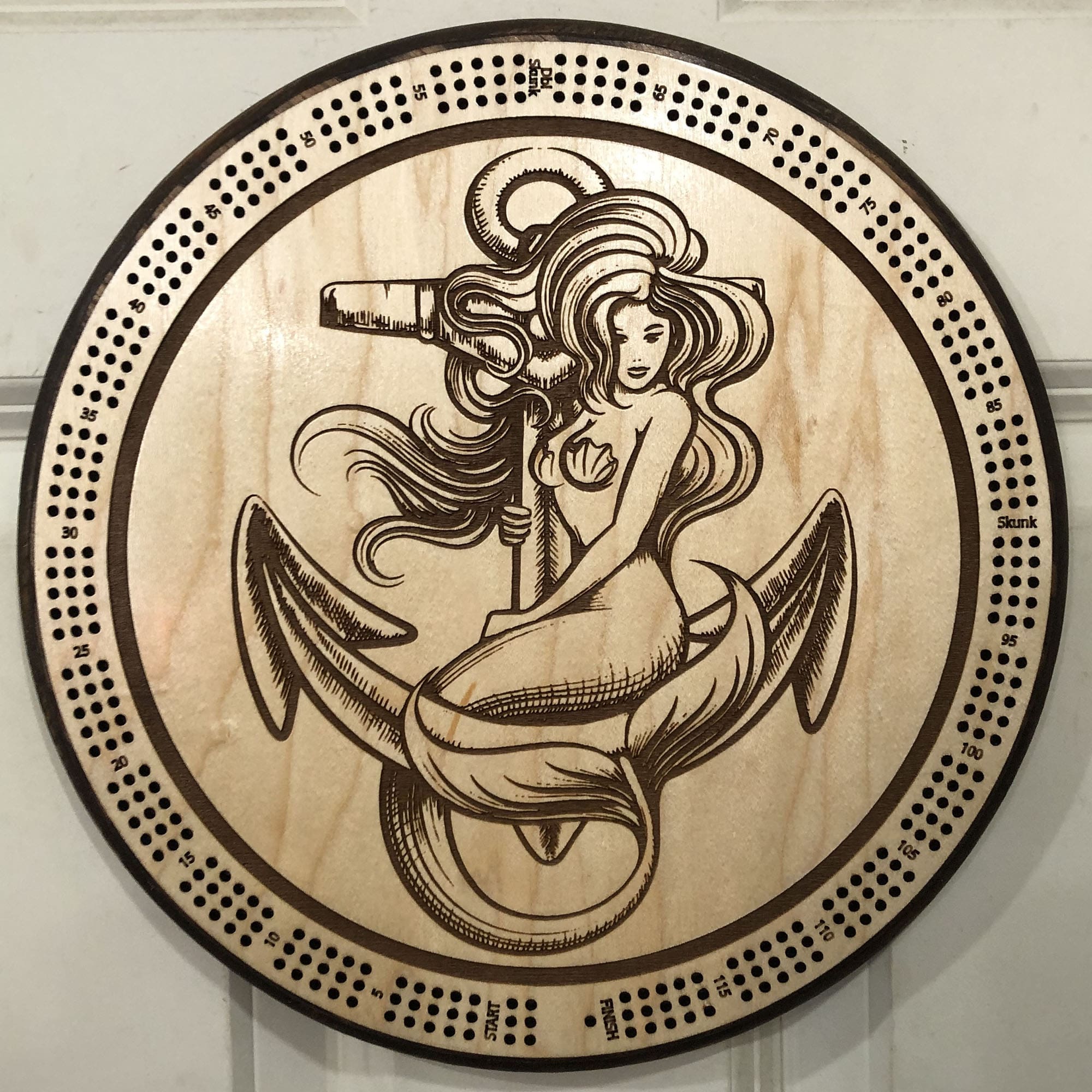 Mermaid Cribbage Board | 3-Track, 120-Point Round Game with Pegs & Cards