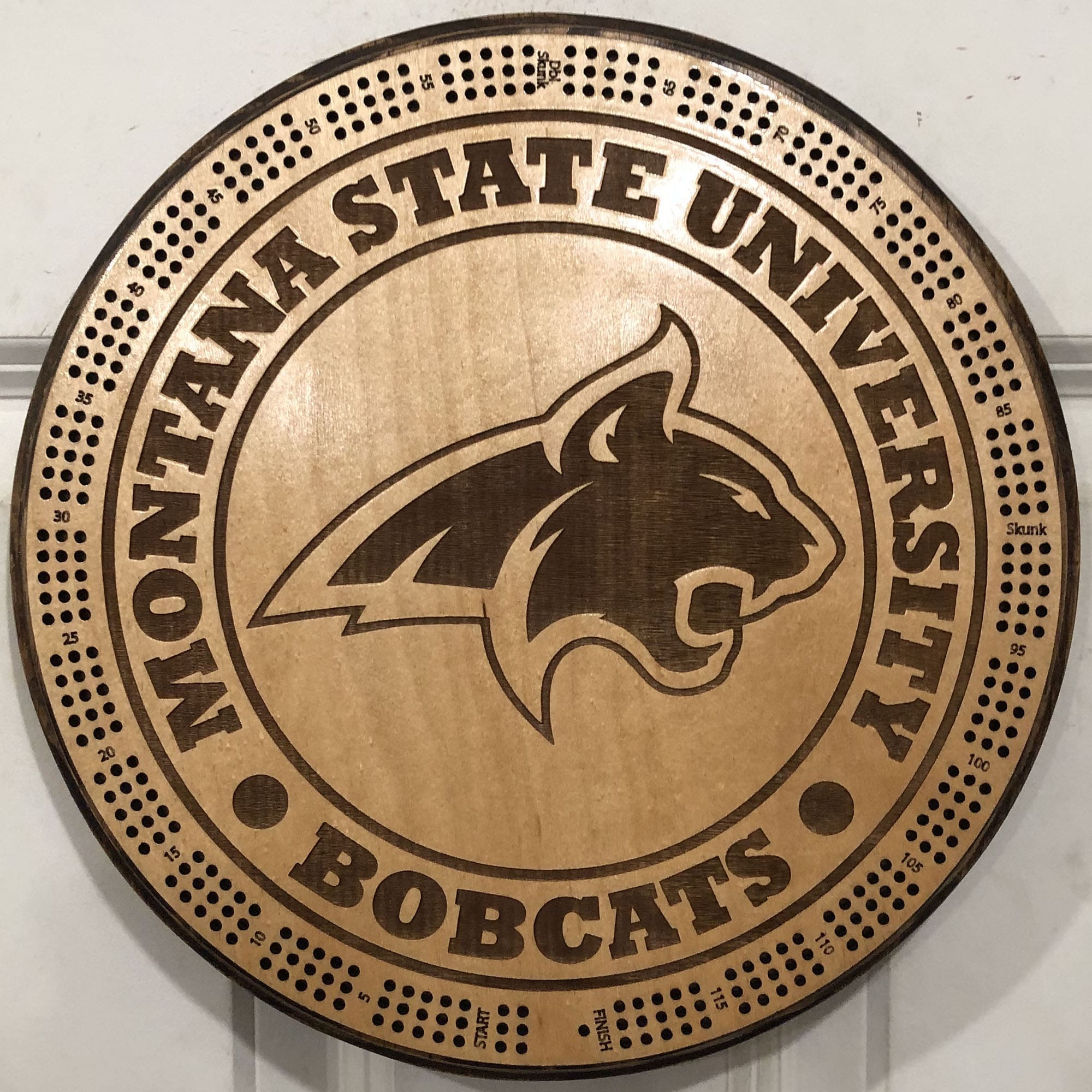 Montana Bobcats Cribbage Board | 3-Track, 120-Point Round Game with Pegs & Cards
