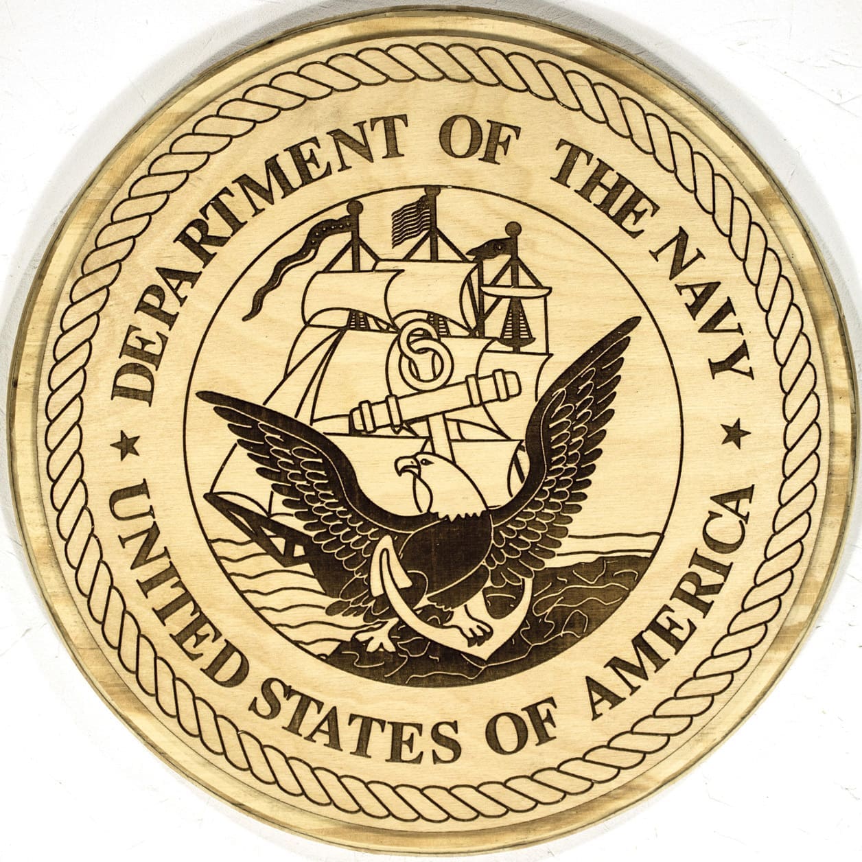 Official US Navy plaque on a natural  colored backed plaque.  This piece