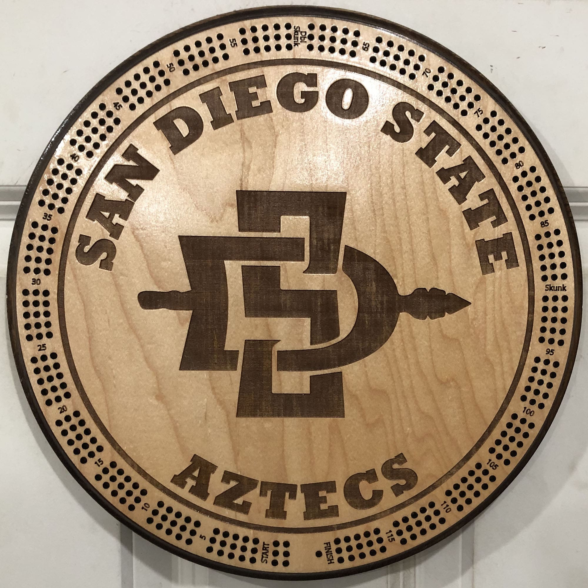 San Diego State Aztecs Cribbage Board | 3-Track, 120-Point Round Game with Pegs & Cards