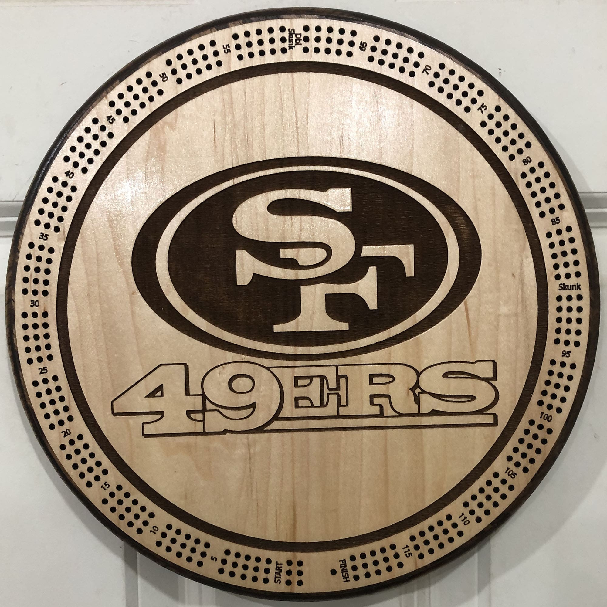 San Francisco 49ers Cribbage Board | 3-Track, 120-Point Round Game with Pegs & Cards