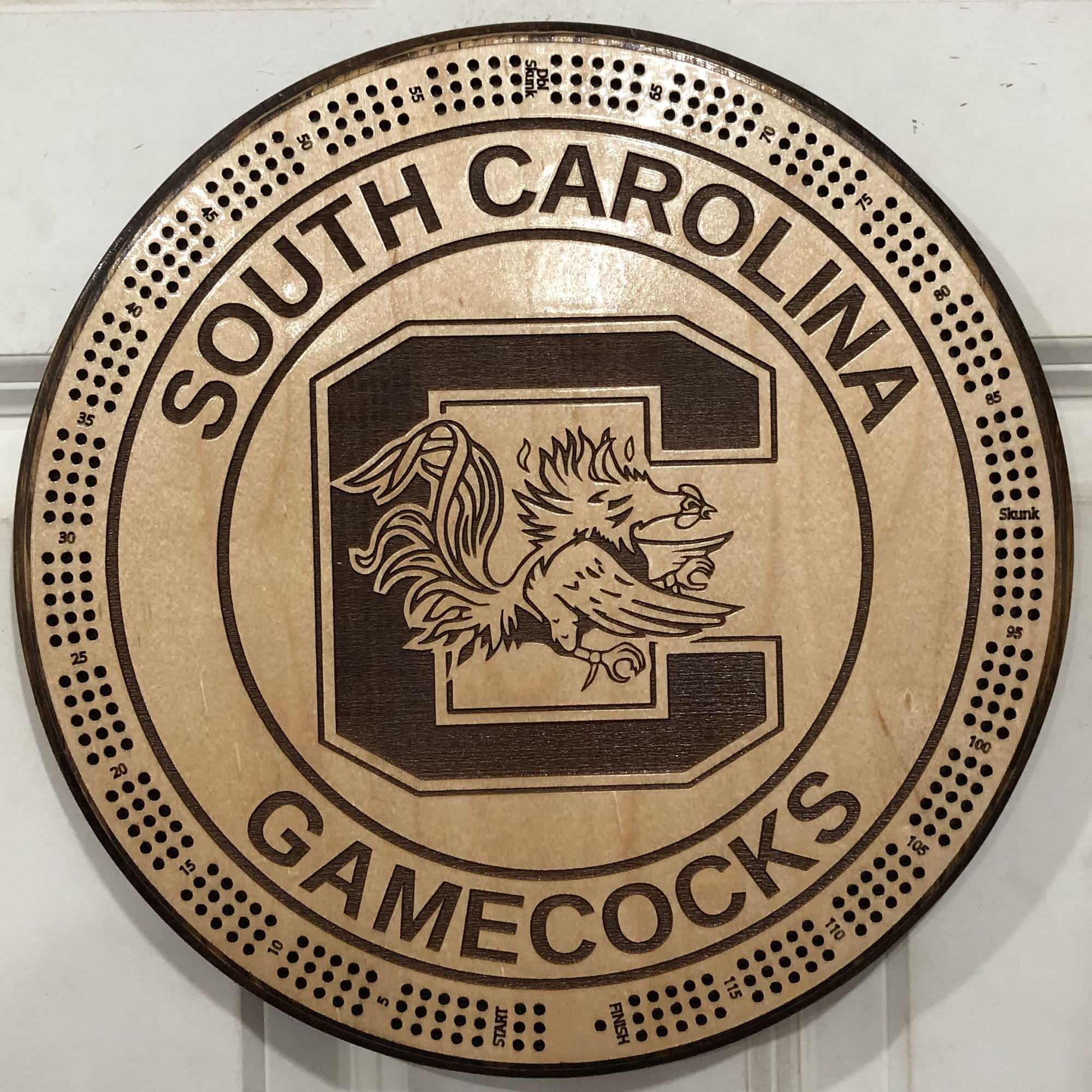 South Carolina Gamecocks Cribbage Board | 3-Track, 120-Point Round Game with Pegs & Cards