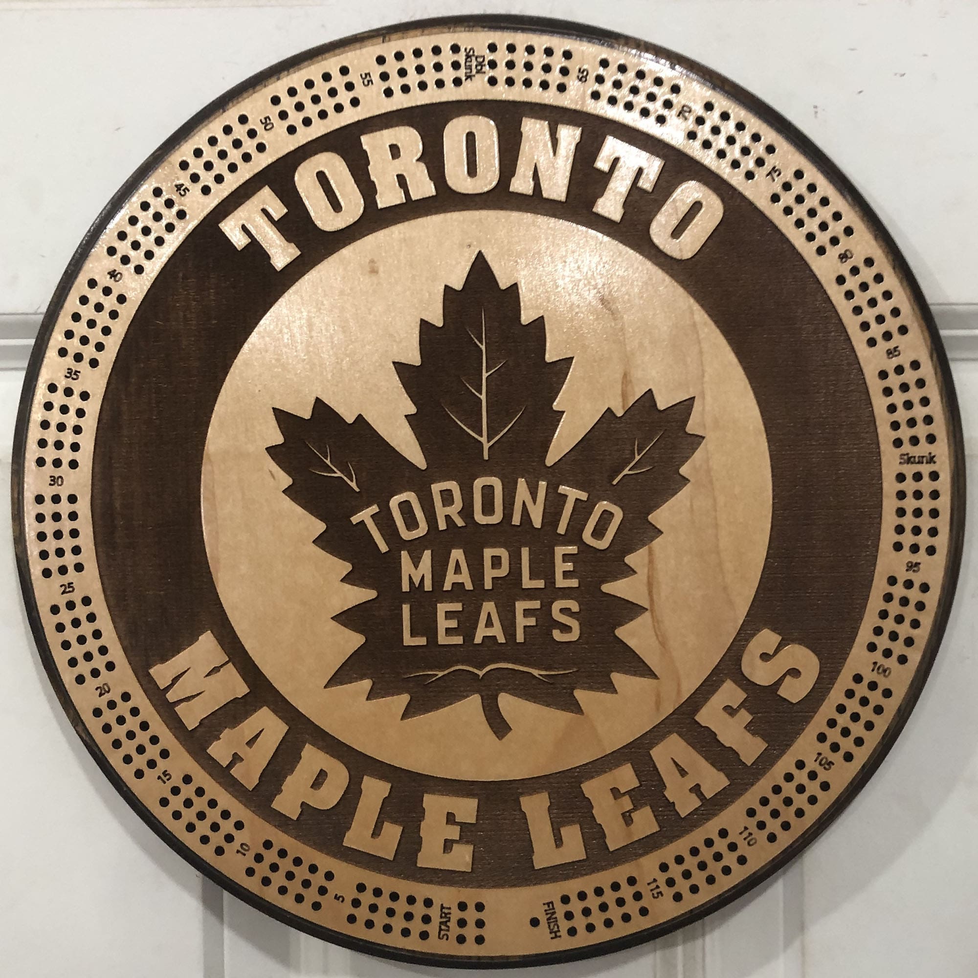 Toronto Maple Leafs Cribbage Board | 3-Track, 120-Point Round Game with Pegs & Cards